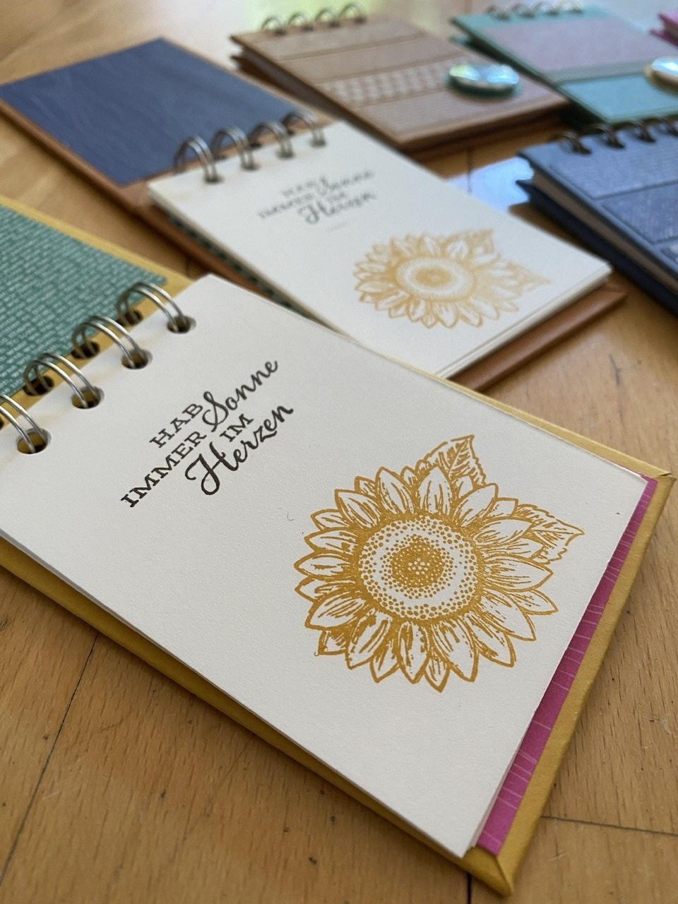 Ihr wisst ja, dass ich am 30.05. eine virtuelle Katalogparty mache. Und normalerweise basteln wir bei den richtigen Katalogparties bei mir zu Hause ein Make and Take, lachen und quatschen zusammen und lassen es uns gutgehen. Da dies aber dieses Mal leider nicht möglich ist und sich auch das virtuelle Basteln eines kleinen Projekts nicht umsetzen lässt, da sich auch Gäste angemeldet haben, die noch kein Stampin´ Up! Material haben, dachte ich mir, ich mache für meine Gäste ein kleine Notizbuch anstatt des Lesezeichens, das es sonst immer im Katalog als Beilage gibt. Wer möchte, kann sich Notizen dort reinmachen, aber Grundidee ist eigentlich, die neuen InColor Farben 2020 - 2022 live zu sehen. Zum Abrunden habe ich noch einen kleinen Button vorne drauf gemacht.