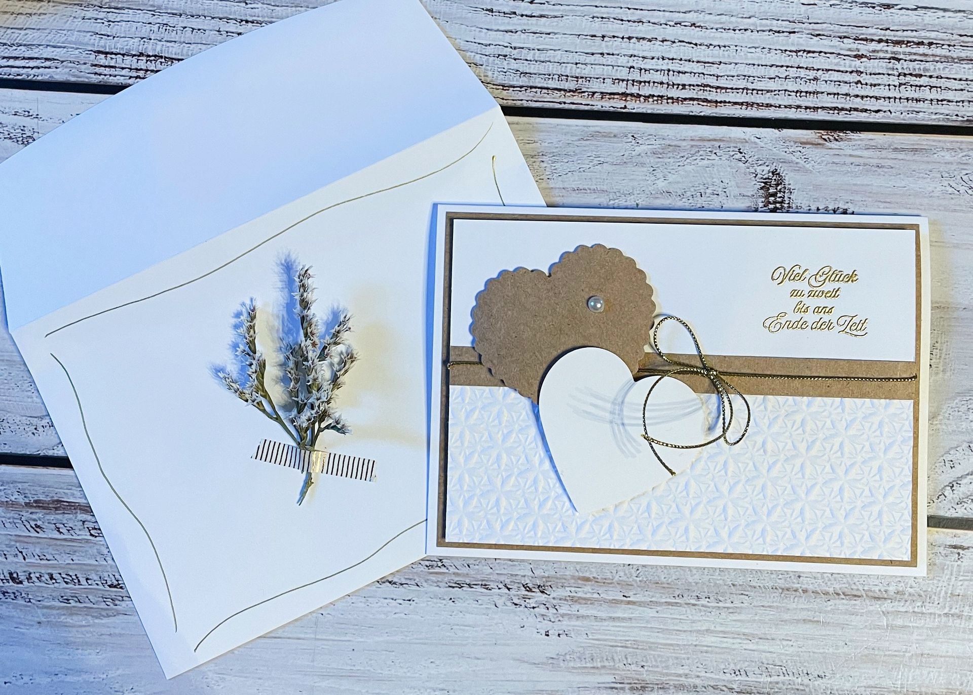 Meine Freundin brauchte schnell eine schöne Hochzeitskarte. Die habe ich allerdings nicht vorrätig, weil man ja doch je nach Verhältnis eine schlichtere oder pompösere haben muss.
