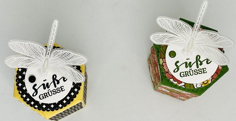 Ich mag die Sechseckschachteln echt gerne, dabei verwende ich sie eigentlich viel zu selten. Ich mag es, dass man recht wenig Material braucht, aber dennoch relativ viel darin verpacken kann.