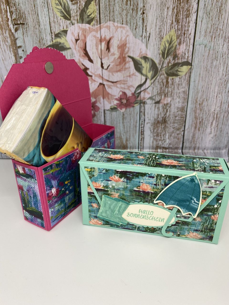 Bei der linken Box habe ich die Grundfarbe Wassermelone benutzt, bei der rechten Jade. Hier kommen die Maße: