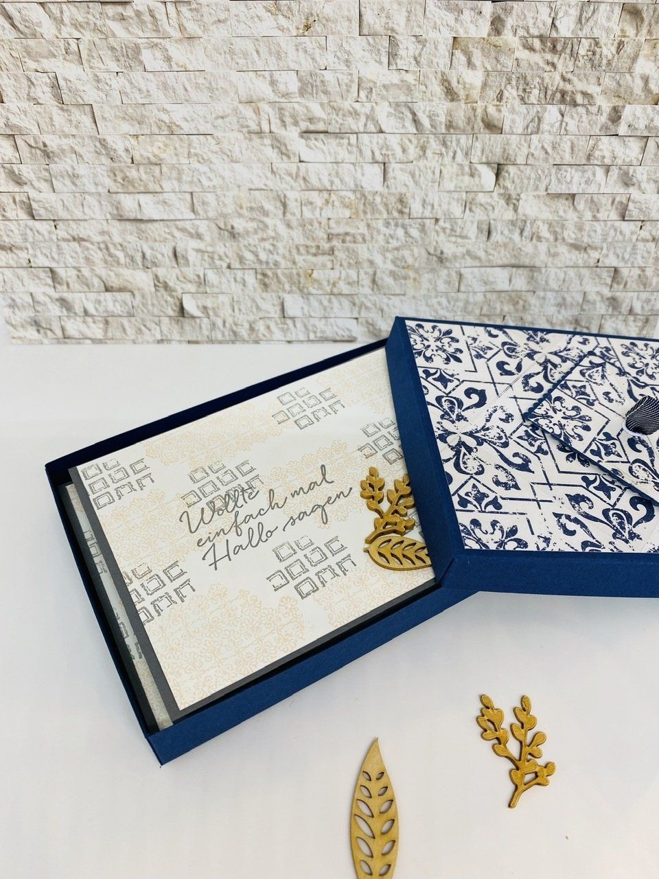Das wunderbare Designerpapierpaket beinhaltet neben den ganzen Naturtönen auch diese wunderschöne blaue Papier. Es ist ähnlich dem Papier in dem Boho Indigo Medley, aber eben großformatig.
