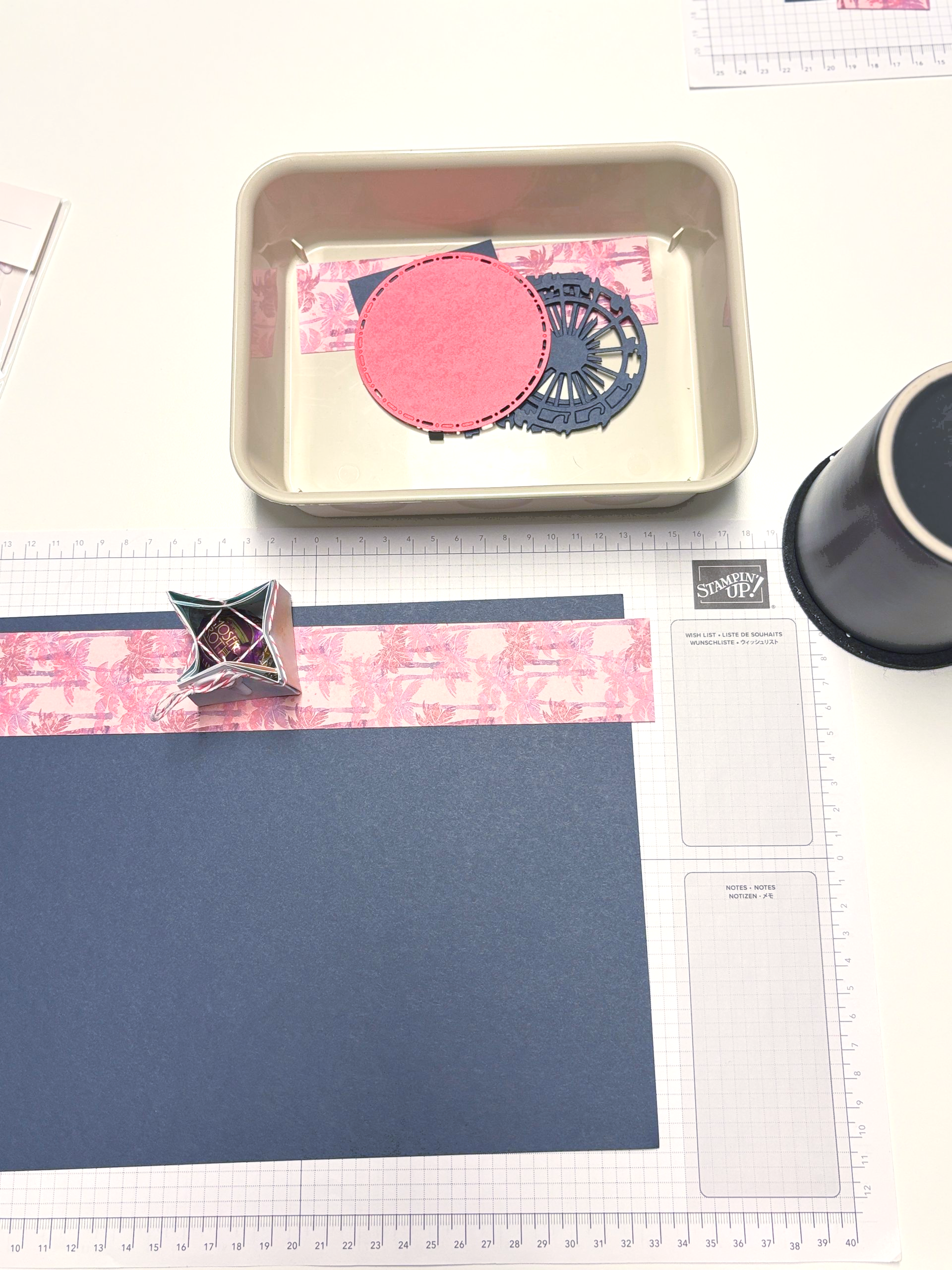 Das Highlight unseres Workshops? Eine aufwendige Hexagon-Facettenbox, die wir mit dem vielseitigen Set „Kirmesvergnügen“ aus dem aktuellen Minikatalog gestalten. Das Herzstück der Box ist das detailreiche Riesenrad, das sofort gute Laune und Jahrmarkt-Stimmung verbreitet und sich sogar drehen lässt. Und ich muss ehrlich sagen, ich bin so was von rausgegangen aus meiner Komfortzone!!! Eigentlich ist diese Reihe so gar nicht auf meiner Wunschliste gewesen. Im Nachgang war es aber eine richtig gute Entscheidung, denn das Set ist so vielseitig...