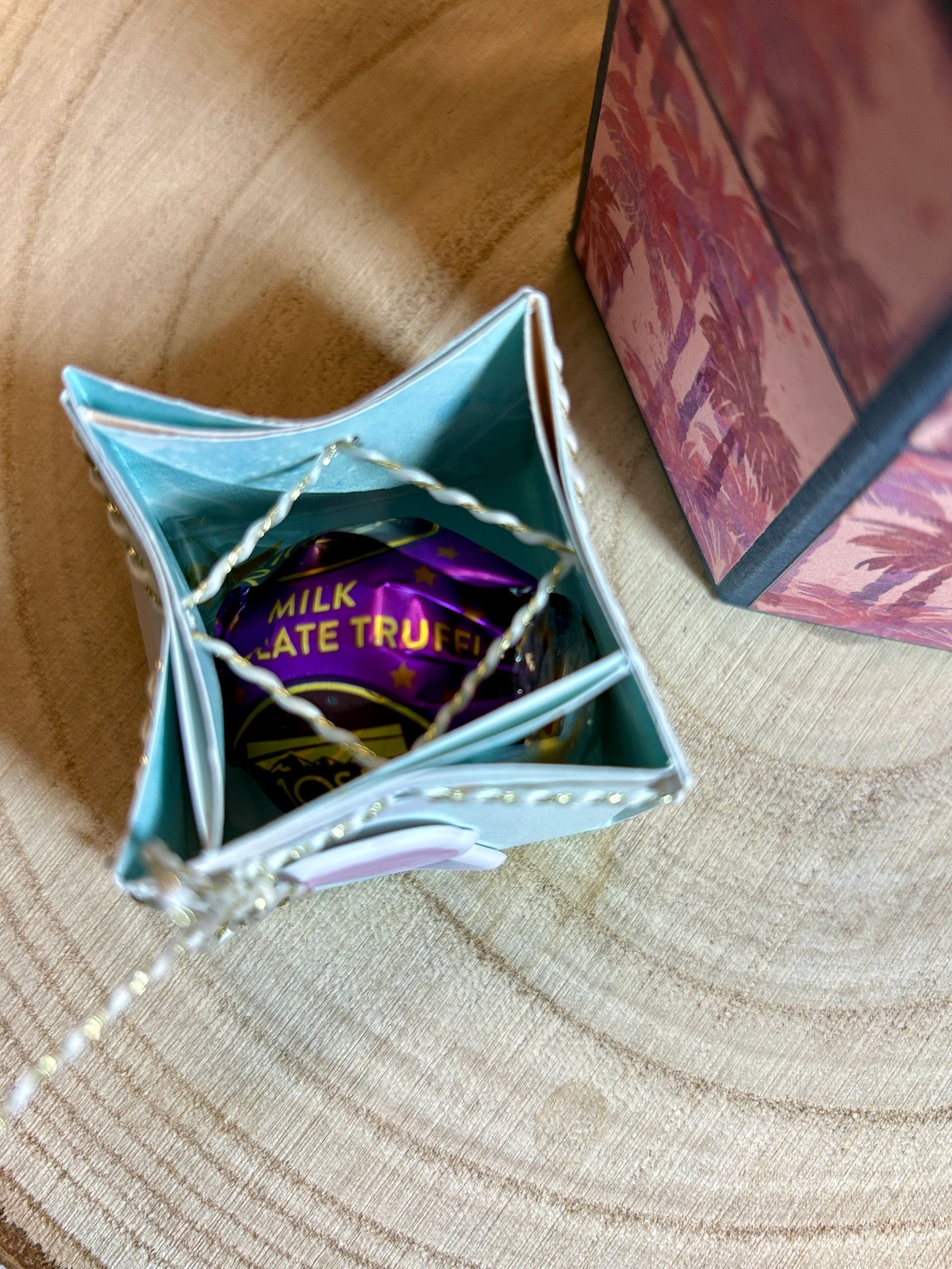 Natürlich darf bei einem Basteltreff ein kleines Dankeschön nicht fehlen. Als kleines Gastgeschenk (Goodie) wartet auf jedem Platz ein „Diamond Top Sachet“. Diese kleinen Papier-Diamanten sind nicht nur optisch ein Hingucker, sondern verstecken im Inneren auch eine süße Praline als Nervennahrung. Ein kostenloses Anleitungsvideo folgt...