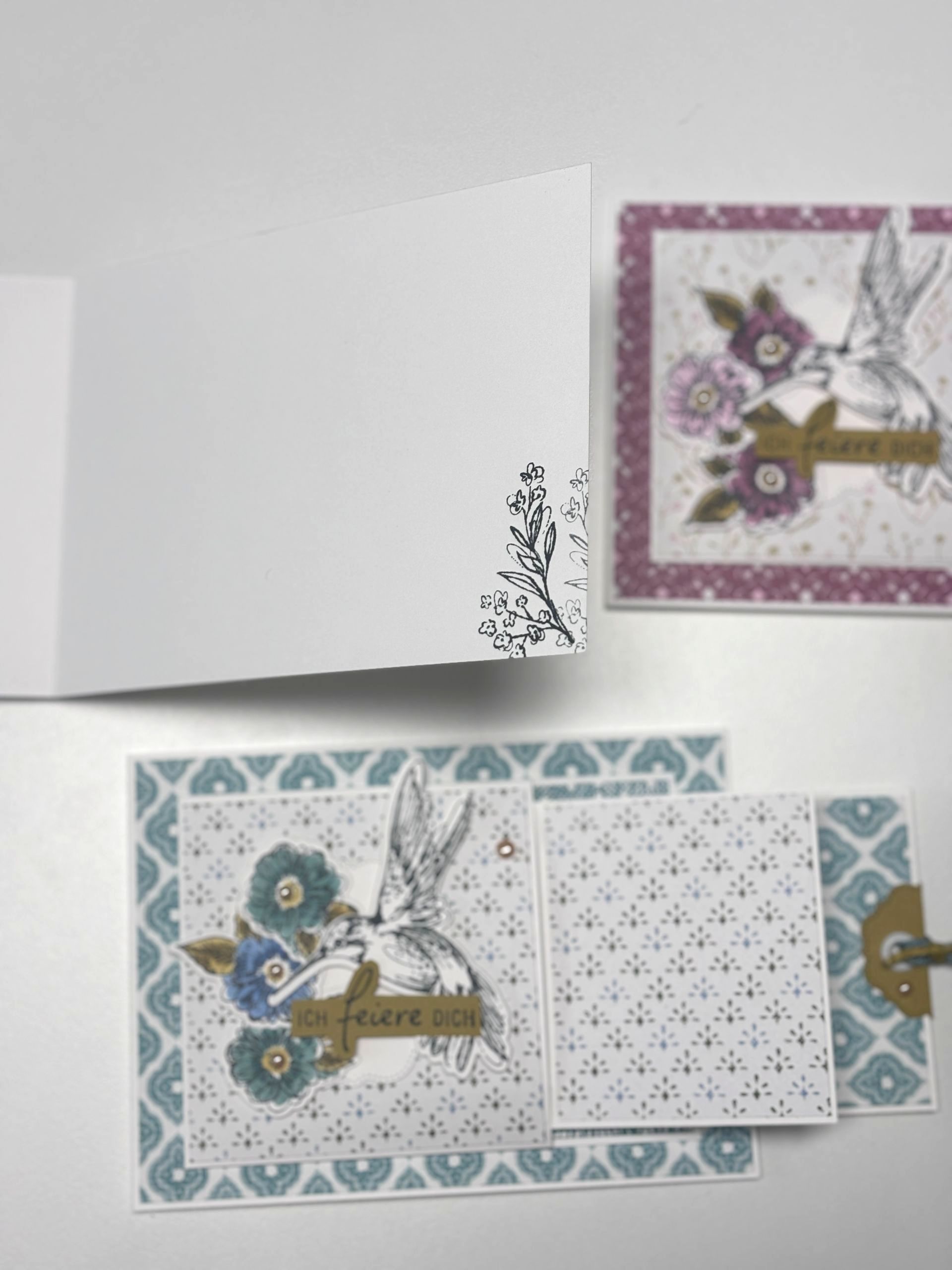 Also diese Karte hat mich echt Nerven gekostet. Zunächst hatte ich die malvefarbene Version gebastelt - meinen Prototypen. Daraufhin habe ich ein Anleitungsvideo abgedreht, allerdings ist mir nicht aufgefallen, dass das Video aus mir unbekannten Gründen keinen Ton aufgezeichnet hat. Nach dem Video habe ich die lagunenblaue Version noch gebastelt, weil mir die Karte so gut gefallen hat. Dann hab ich gedacht, ich synchronisiere das Video einfach neu. Aber leichter gesagt als getan- nach 2 Stunden habe ich aufgegeben. Dann wollte ich jeden Tag das Video neu abdrehen, aber immer kam etwas dazwischen.