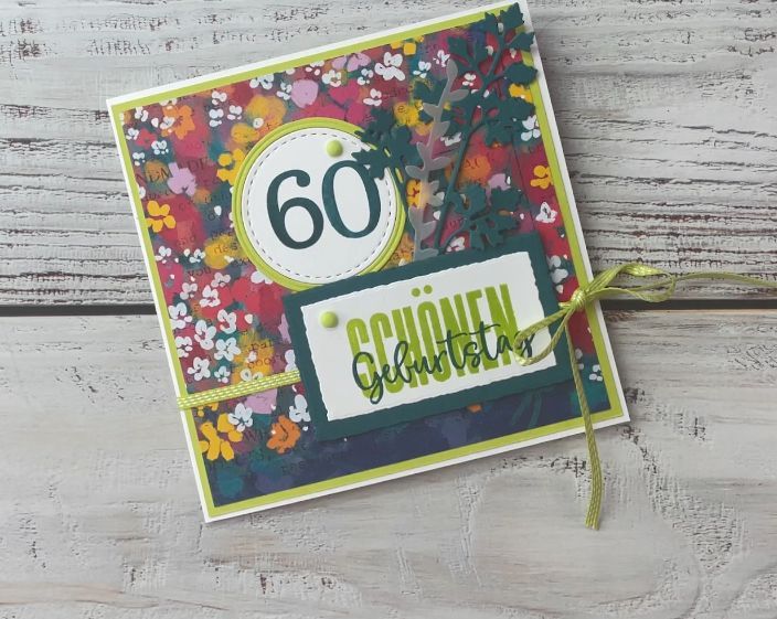 Die nächste Karte war ebenfalls für einen 60 jährigen Geburtstag - aber unschwer zu erkennen für eine Blumenliebhaberin.