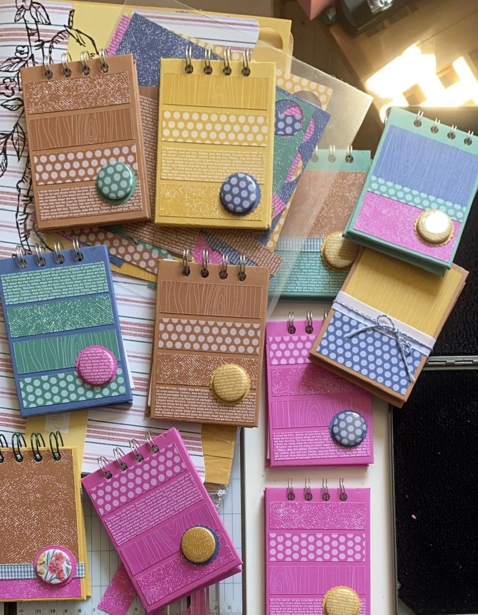 Ihr wisst ja, dass ich am 30.05. eine virtuelle Katalogparty mache. Und normalerweise basteln wir bei den richtigen Katalogparties bei mir zu Hause ein Make and Take, lachen und quatschen zusammen und lassen es uns gutgehen. Da dies aber dieses Mal leider nicht möglich ist und sich auch das virtuelle Basteln eines kleinen Projekts nicht umsetzen lässt, da sich auch Gäste angemeldet haben, die noch kein Stampin´ Up! Material haben, dachte ich mir, ich mache für meine Gäste ein kleine Notizbuch anstatt des Lesezeichens, das es sonst immer im Katalog als Beilage gibt. Wer möchte, kann sich Notizen dort reinmachen, aber Grundidee ist eigentlich, die neuen InColor Farben 2020 - 2022 live zu sehen. Zum Abrunden habe ich noch einen kleinen Button vorne drauf gemacht.