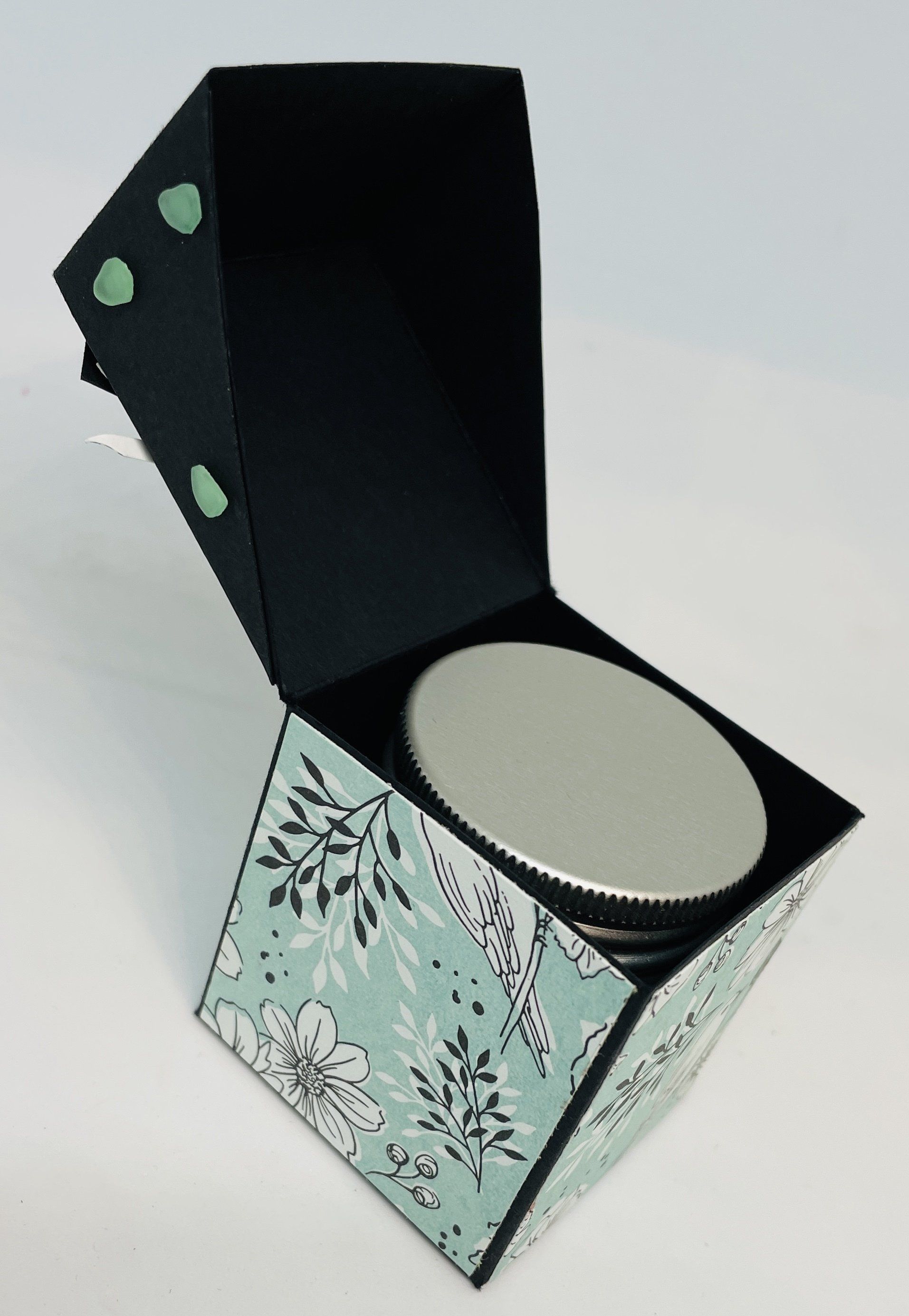 Farbkarton Schwarz: 17,5 cm x 19,8 cm, gefalzt an der kurzen Seite bei 4,7 cm, 9,7 cm, 14,5 cm und an der langen Seite bei 4,7 cm, 9,4 cm, 17,1 cm und 18,8 cm.