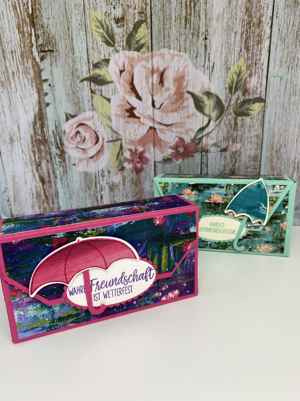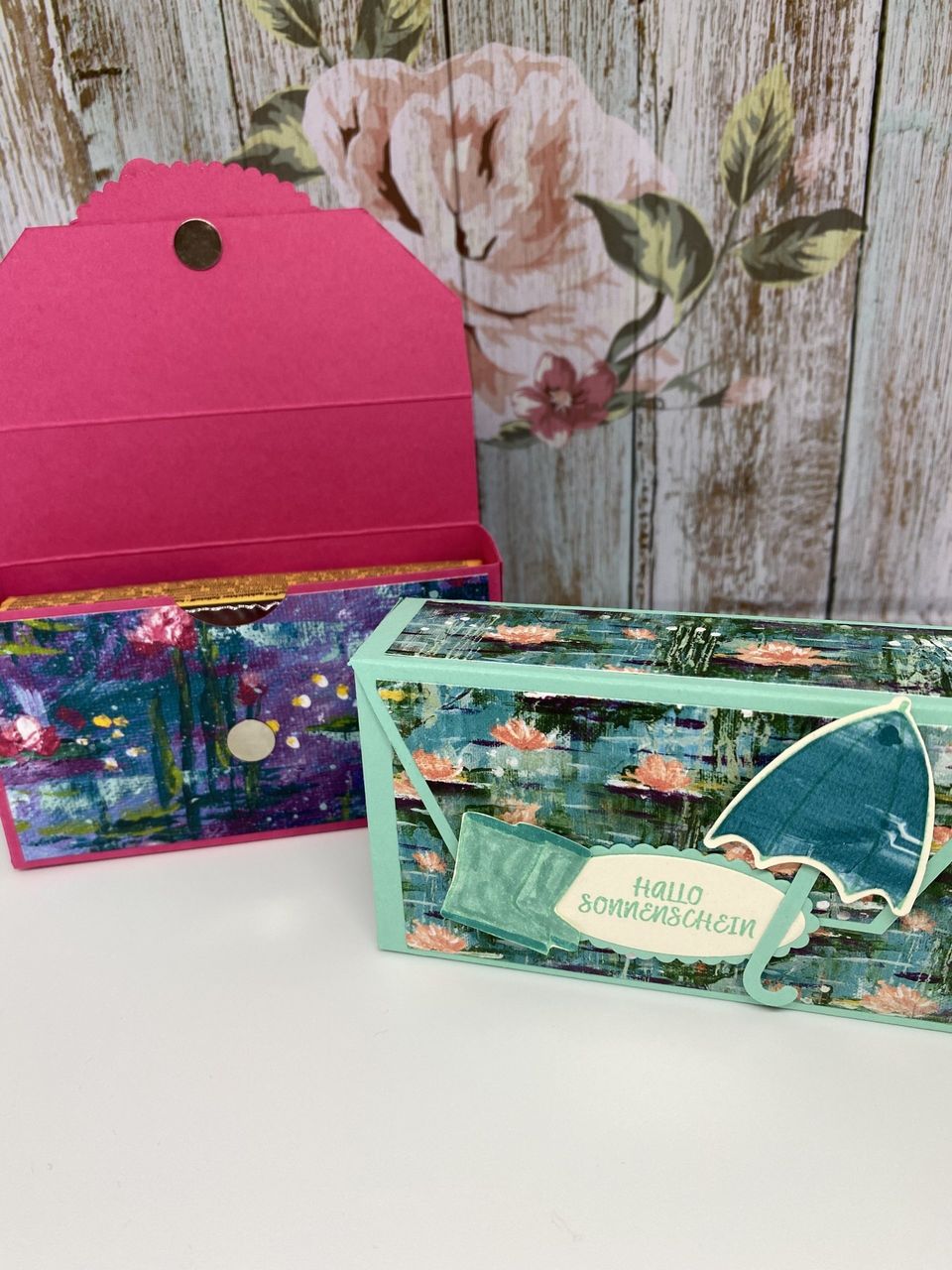 Bei der linken Box habe ich die Grundfarbe Wassermelone benutzt, bei der rechten Jade. Hier kommen die Maße: